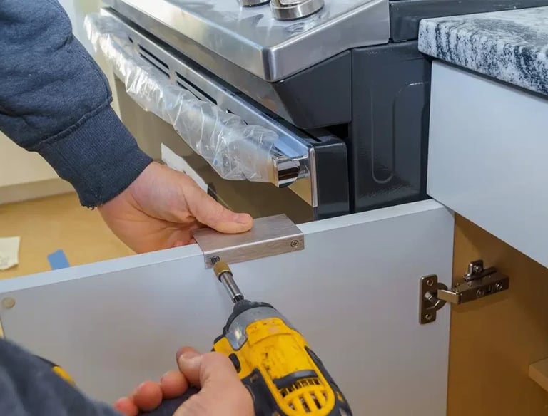 Cozinhas: Instalação e fixação de armários aéreos e gabinetes.